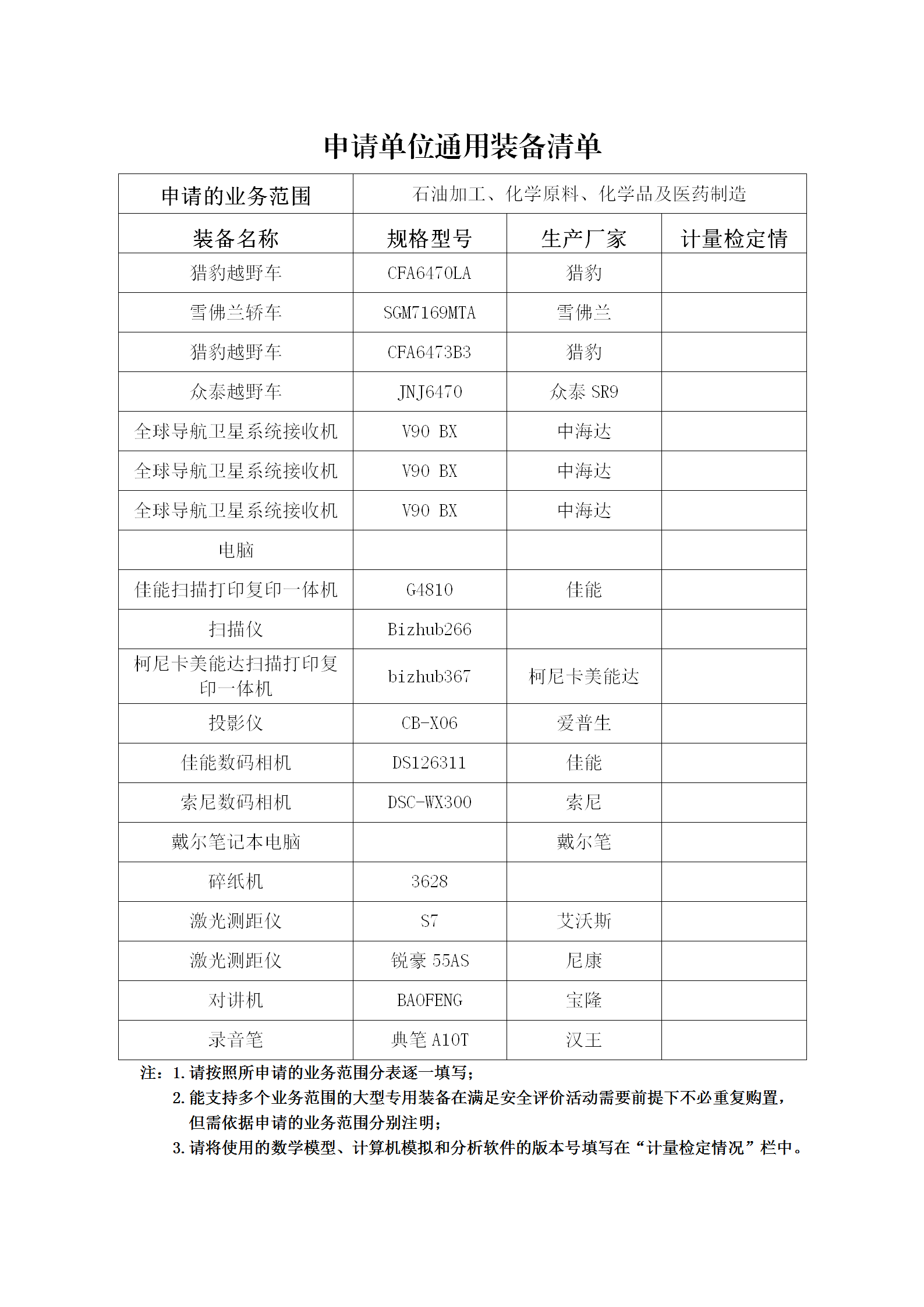 昭通市鼎安科技有限公司專業(yè)設備、設施一覽表